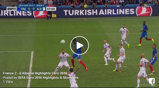 And the ball finally found its way past Berisha; Griezmann directing the Adil Rami’s cross into the far corner with his head to rapturous celebrations.