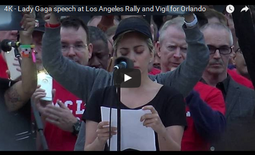 “Tonight I will not allow my anger and outrage over this attack to overshadow our need to honor those who are grieving, truly, for their lost ones, lost members of the LGBT community,” Lady Gaga told the crowd. “I hope you know that myself and so many are your allies.”