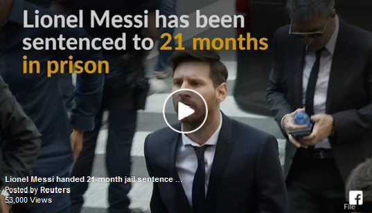 Barcelona’s Argentine soccer star Lionel Messi was sentenced on Wednesday to 21 months in prison and fined 2 million euros ($2.2 million) after being found guilty of three counts of tax fraud, although it is unlikely he will serve time.