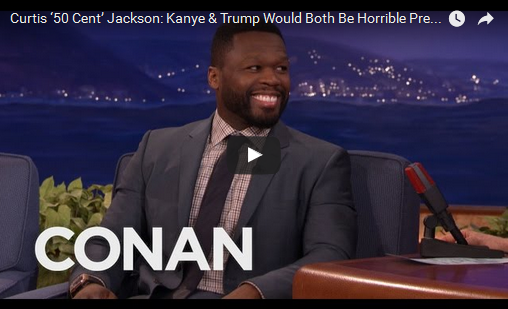 Add Curtis “50 Cent” Jackson to the list of celebrities not voting for Donald Trump. The rapper visited Conan on Wednesday night to chat about the 2016 election, his bankruptcy woes and getting arrested in St. Kitts.