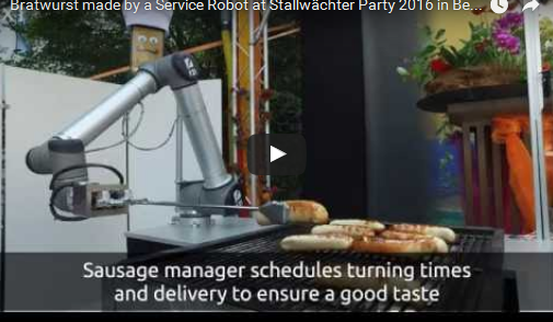 Робот кој сам пече скара/Bratwurst made by a Service Robot at Stallwächter Party 2016 in Berlin 20Jul 2016Add a comment СподелиTweetLike Loading...