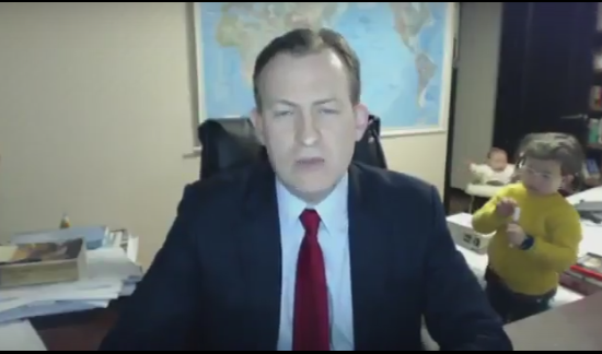 Би-Би-Си радио објави симпатично видео, во кое политичкиот аналитичар Роберт Кели се јавуваше во живо за Би-Би-Си од својата домашна канцеларија, кога влезе и неговата четиригодишна ќерка.