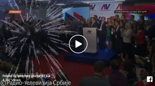 Славење со трубачи во изборниот штаб на Александар Вучиќ по денешните избори за претседател на Србија 2Apr 2017Add a comment СподелиTweetLike Loading...