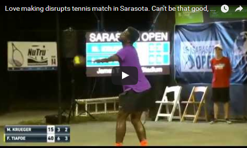 На спортските терени сме биле сведови на многу бизарни моменти, но понекогаш некој нови ситуации ги надминуваат сите очекувања, а токму тоа се случи на челинџер турнирот во Сарасота на мечот меѓу Френсис Тиафо и Мичел Кругер.