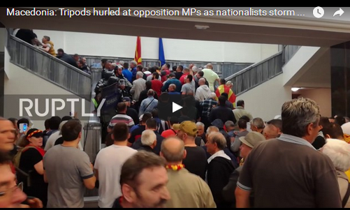 Како беше повреден Зоран Заев: Моментот и ударот фатени на снимка 29Apr 2017Add a comment Видеото го објави руската видео агенција RUPTLY, која е дел од новинската агенција Russia Today Macedonia: Tripods hurled at opposition MPs as nationalists storm parliament СподелиTweetLike Loading...