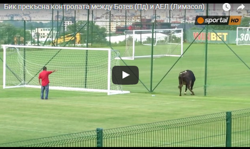 Пријателски подготвителен меч меѓу екипата Ботев и АЕЛ од Лимасол во близина на Софија беше прекинат од многу необични причини – бик влезе во теренот и полека се прошета по него.