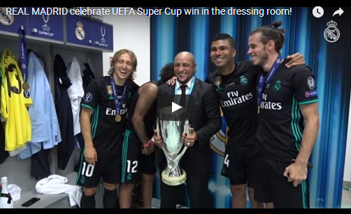 Атмосферата во соблекувалната на Реал Мадрид по освојувањето на Супер Купот 10Aug 2017Add a comment REAL MADRID celebrate UEFA Super Cup win in the dressing room! СподелиTweetLike Loading...