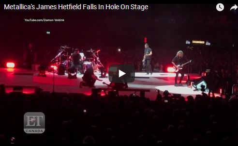 Снимката направена од еден посетител на концертот прикажува како Хетфилд паѓа откако нагазува на вдлабнатина на сцената во текот на вчерашниот настап.