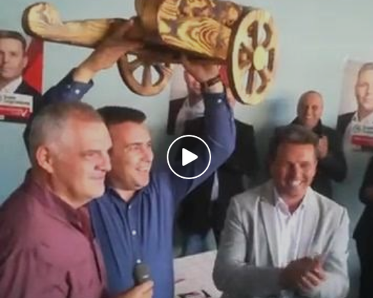 Заев во Црешево доби црешово топче 24Oct 2017Add a comment Лидерот на СДСМ и премиер Зоран Заев доби црешово топче при посетата на село Црешово. Тој таму беше заедно со кандидатот за градоначалник на општина Гази Баба, Борче Георгиевски. СподелиTweetLike Loading...