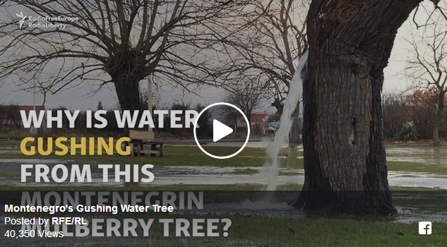 Во селото Диноша во Црна Гора се наоѓа дрво низ кое тече вода.
