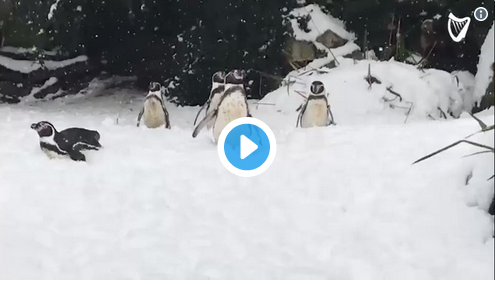 Во зоолошката градина во Даблин се снимени како пингвините уживаат во снегот.
