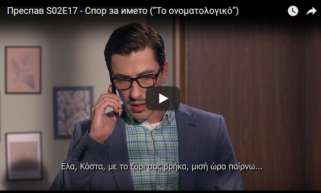 Преспав S02E17 – Спор за името (“Το ονοματολογικό“) 8Mar 2018Add a comment https://www.youtube.com/watch?v=Tj2i3g5cR48&t=1058s СподелиTweetLike Loading...