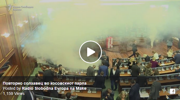 Пратениците од Движењето Самоопрделување со флање солзавец во собраниската сала, попладнево повторно ја прекнаа седницата на косовскиот парламент, на која треба да се гласа за договорот за демаркација на косовско-црногорската граница.