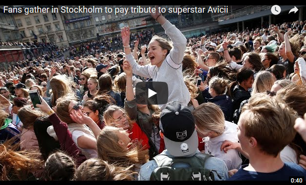 Фановите го исполнија Сергелс торг, најголемиот плоштад во Стокхолм, родниот град на Тим Берглинг (Авичи), за по минута молчење, тажниот настан да се претвори во журка, откако беа пуштени некои од неговите најголеми хитови.