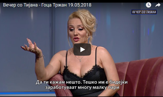 Оваа сабота во „Вечер со Тијана“ на 1ТВ, Гоца Тржан ги отвори картите на маса. Искрено и без влакна на јазикот ги сподели своите впечатоци и животни искуства од приватноста, но и детали за Тоше Проески.