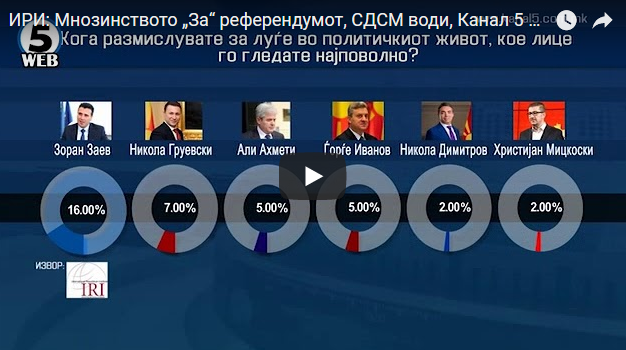 ИРИ: Мнозинството „За“ референдумот, СДСМ води, Канал 5 најгледан 29Aug 2018Add a comment СподелиTweetLike Loading...