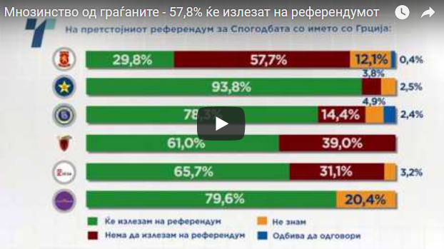 Најнова анкета – Мнозинство од граѓаните – 57,8% ќе излезат на референдумот 5Sep 20185 Sep 2018Add a comment СподелиTweetLike Loading...