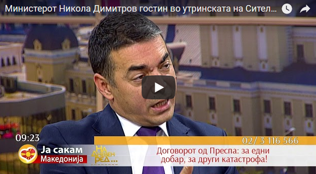 Блажевски до Димитров: Која ви омилена патриотска песна? 6Sep 20186 Sep 2018Add a comment Во денешното издание на утриснаката програма на Сител Телевизија, „Ја сакам Македонија“, гостин беше министерот за надворешни работи на Македонија, Никола Димитров. СподелиTweetLike Loading...