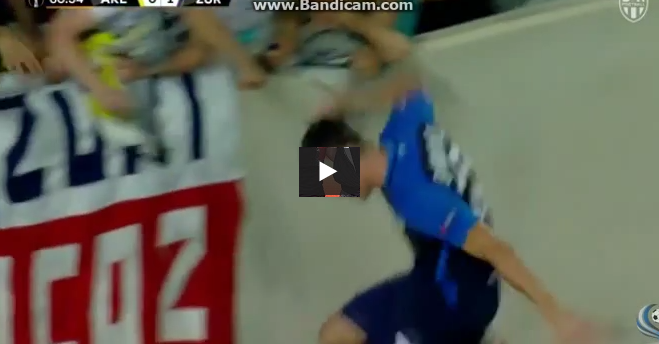 На натпреварот од Лига Европа помеѓу АЕК Ларнака и Цирих се случи интересна случка. Откако нашиот интернационалец Даниел Мојсов (АЕК Ларнака) играше со рака беше досуден пенал, а стрелецот на голот Benjamin Kololli отиде малку предалеку со славењето на погодокот и буквално пропадна. Погледнете