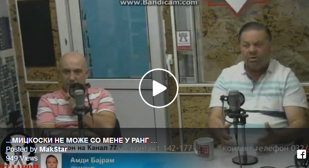 Амди Бајрам “…МИЦКОСКИ НЕ МОЖЕ СО МЕНЕ У РАНГ СО ПОЛИТИЧАРИ ДА БИДЕ..” 24Sep 2018Add a comment СподелиTweetLike Loading...