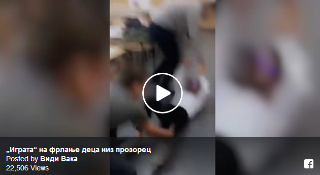 Вака изгледа „играта“ на фрлање деца низ прозорец во училиште во скопски Аеродром… 3Oct 2018Add a comment Вака изгледа „играта“ на фрлање деца низ прозорец во училиште во скопски Аеродром. Според коментари на социјалните мрежи, слични „игри“ има во повеќе други училишта СподелиTweetLike Loading...