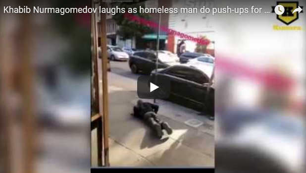 Нурмагомедов сега се најде во центарот на вниманието и поради видео снимено пред неколку месеци а на кое се гледа како Хабиб бескруполозно тера двајца бескуќници на улиците во Њујорк да прават на улица склекови за да им даде пари.
