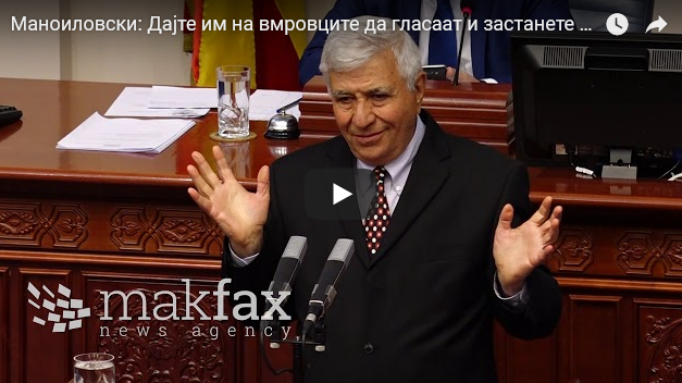 Пратеникот од ДУИ, Бранко Манојловски, од собраниската говорница на денешната пленарна седница порача да се амнестираат сите обвинети функционери и партиски активисти и државата да ги заштити пратениците за да можат слободно да гласаат. Целта е, како што рече тој, ЕУ, НАТО, високи плати, добра економија и навремени пензии, се друго, рече, е споредно.