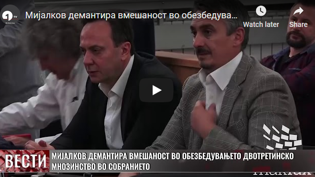 Мијалков демантира вмешаност во обезбедувањето двотретинско мнозинство во Собранието 22Oct 2018Add a comment СподелиTweetLike Loading...