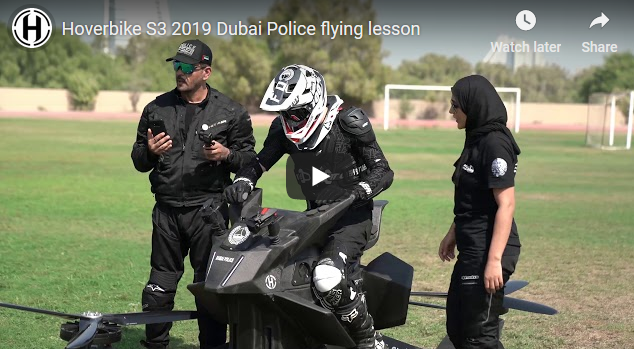 Футуристичките возила треба да станат дел од редовната флота на полицијата до 2020 година. Деновиве на YouTube се појави видео на кое се гледа како еден полицаец управува со летачки моторцикл. Како што велат властите на Дубаи, моментално има два тима кои се обучуваат, а во иднина тој број ќе се зголеми.