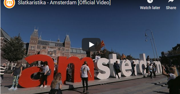 Соодветно со насловот на песната, видеото се снимаше токму во Амстердам, град што е веројатно најпознат по слободната употреба на марихуана, како и по „Квартот на црвените фенери“ (Red-Light Distict). Освен што ја изведува, Слаткаристика се потпишува и како автор на музиката и стиховите, додека аранжманот, миксот и мастерингот се на Иван Јованов – Ивајо и Јован Јованов. Видеото го изработи екипата на продукцијата „Мелем“, под режисерската палка на Огнен Шапковски, а како изгледа и звучи „Амстердам“ дознајте во продолжение. Уживајте!