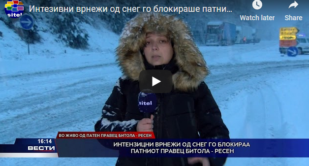 Интезивни врнежи од снег го блокираше патниот правец Битола Ресен 18Nov 2018Add a comment СподелиTweetLike Loading...