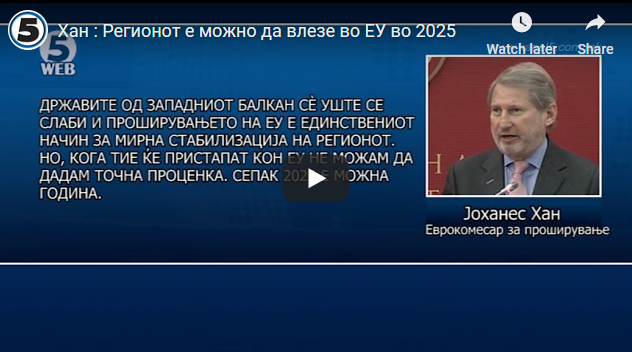Хан : Регионот е можно да влезе во ЕУ во 2025