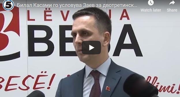Билал Касами го условува Заев за двотретинското мнозинство 28Dec 2018Add a comment На две недели до Пленарната Собраниска седница за финалното гласање за Уставните измени Касами го повика премиерот Заев да седнат и да ги разгледаат нивните барања. СподелиTweetLike Loading...