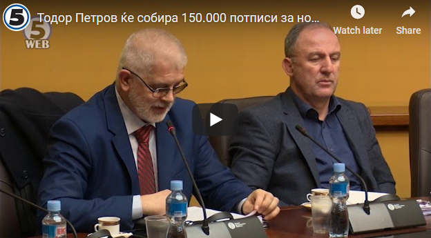 Тодор Петров ќе собира 150.000 потписи за нов референдум 14Jan 2019Add a comment „Дали сте за промена на името на државата Македонија во држава Северна Македонија?“ СподелиTweetLike Loading...