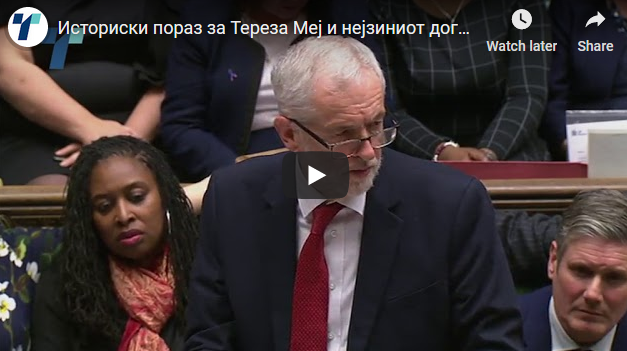 Историски пораз за Тереза Меј и нејзиниот договор со ЕУ – 432 гласа „против“, само 202 гласа „За“ 15Jan 201915 Jan 2019Add a comment СподелиTweetLike Loading...