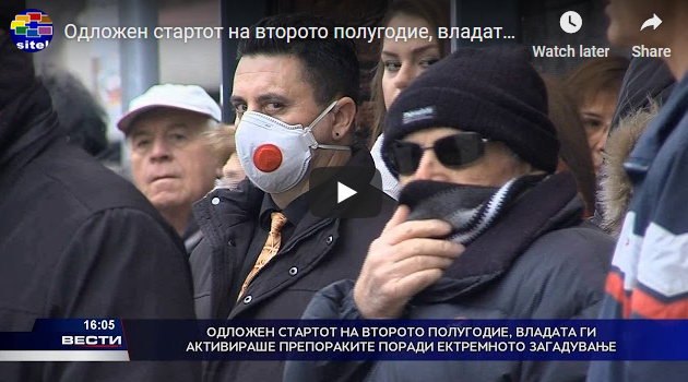 Одложен стартот на второто полугодие, владата ги активираше препораките поради ектремното загадување 20Jan 2019Add a comment СподелиTweetLike Loading...