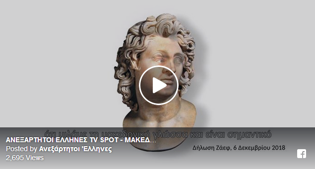 Со спот, во кој македонскиот премиер Зоран Заев се трансформира од ликот на Александар Велики и вели дека веќе никој нема да оспорува дека сме Македонци и зборуваме македонски јазик, од ,,Независни Грци“ прашуваат: ,,Ќе го оставиме Заев да зборува во име на Александар Велики?“ – ,,Северномакедонци, ниту ќе бидам јас, ниту вие ниту децата, заради тоа што јасно е утврдено дека сме Македонци, зборуваме македонски јазик. И многу е важно што повеќе тоа никој нема да ни го оспорува – е делот од изјавата на Заев од 6 декември 2018 искористена во спотот на Независни Грци, а потоа следи пораката: „Александар Велики не може да зборува. Ќе го оставиме Заев да зборува во негово име? “-пишува МИА.