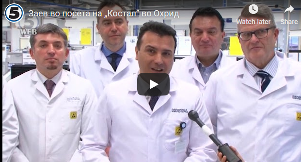 Заев во посета на „Костал” во Охрид 2Feb 20192 Feb 2019Add a comment Премиерот Зоран Заев заедно со министерот Горан Сугарески и со в.д. градоначалникот на Охрид, Константин Георгиевски, вчера беа во посета на германската компанија „Костал Македонија ДООЕЛ Охрид“. СподелиTweetLike Loading...