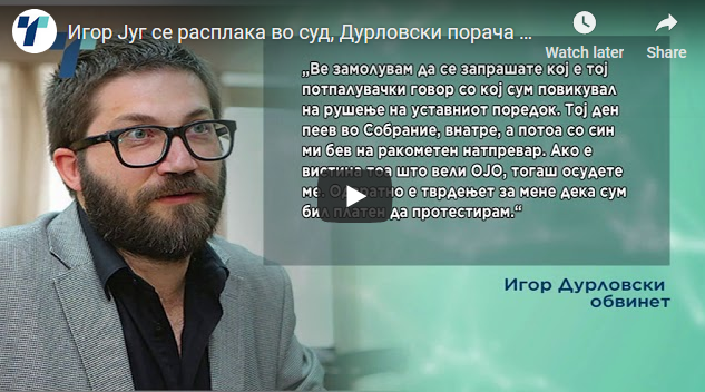 Игор Југ се расплака во суд, Дурловски порача пеење химна не е тероризам 20Feb 2019Add a comment СподелиTweetLike Loading...