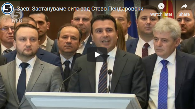 Заев: Застануваме сите зад Стево Пендаровски 1Mar 2019Add a comment Премиерот Зоран Заев најави дека сите 30 коалициски партнери застануваат зад кандидатурата на Стево Пендаровски. СподелиTweetLike Loading...