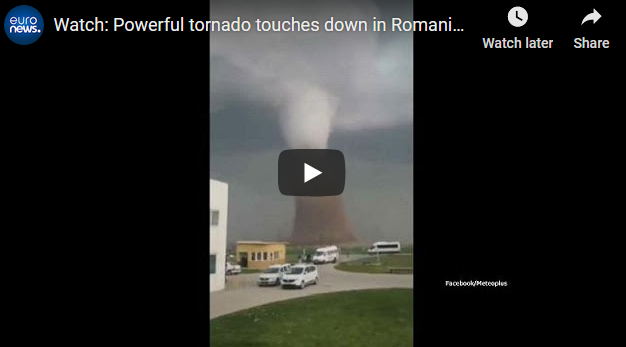 Торнадо во Романија 1May 20191 May 2019Add a comment Силно торнадо во Романија на 70 километри од Букурешт. Настаната е штета врз домовите и возилата, пренесуваат медиумите од регионот. СподелиTweetLike Loading...