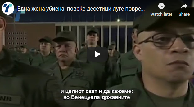 Една жена убиена, повеќе десетици луѓе повредени во судирите во Венецуела 2May 2019Add a comment СподелиTweetLike Loading...