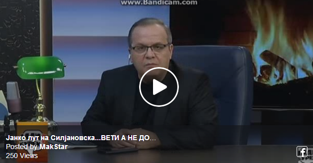 Јанко лут на Силјановска…ВЕТИ А НЕ ДОЈДЕ ВО ЕМИСИЈА, НЕ И ДОЗВОЛИЈА, НЕМА ДА МОЖЕШЕ ДА ГИ ОДГОВОРИ ВАШИТЕ ПРАШАЊА… 14May 2019Add a comment СподелиTweetLike Loading...
