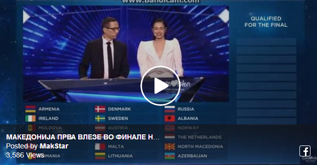 МАКЕДОНИЈА ПРВА ВЛЕЗЕ ВО ФИНАЛЕ НА ЕВРОВИЗИЈА 2019 17May 2019Add a comment СподелиTweetLike Loading...