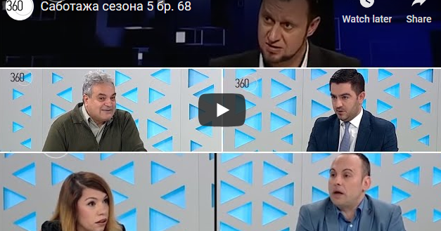 Саботажа сезона 5 бр. 68 21May 2019Add a comment „Пола-Саботажа“, емитувана на 20 мај 2019 година (понеделник) на ТВ Алсат-М во емисијата „360 степени“. автор: Среќко Поповски монтажа: Коста А СподелиTweetLike Loading...