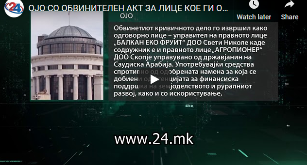 ОЈО СО ОБВИНИТЕЛЕН АКТ ЗА ЛИЦЕ КОЕ ГИ ОШТЕТИЛО ИПАРД СРЕТСТВАТА НА ЕУ 18Jul 2019Add a comment СподелиTweetLike Loading...