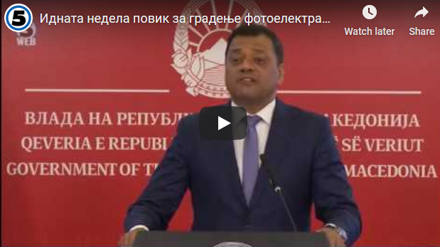 Вицепремиерот задолжен за економски прашања, Кочо Анѓушев, и министерот за економија, Крешник Бектеши, на прес-конференција во Владата информираа дека од наредната недела до 27 септември ќе биде распишан јавен повик за изградба на фотонапонски електрани на приватно земјиште со вкупна инсталирана моќност од 27 мегавати по принцип на Премиум.
