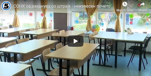 СОНК се заканува со штрајк – неизвесен почетокот на учебната година 26Aug 2019Add a comment Петте проценти понудени од страна на Министерството за образование не ги предомисли од синдикатот за образование и наука(СОНК) на втори септември да го започнат штрајкот. СподелиTweetLike Loading...