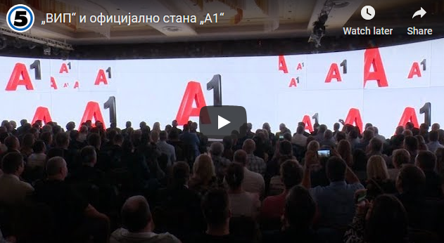 „ВИП“ и официјално стана „А1“ 3Sep 2019Add a comment ВИП стана А1. Телекомуникациската компанија денеска свечено го претстави новото име, лого и изглед. СподелиTweetLike Loading...