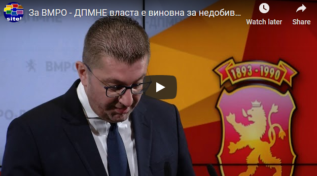 За ВМРО – ДПМНЕ власта е виновна за недобивањето датум – Мицкоски очекува оставка од Заев 18Oct 2019Add a comment СподелиTweetLike Loading...